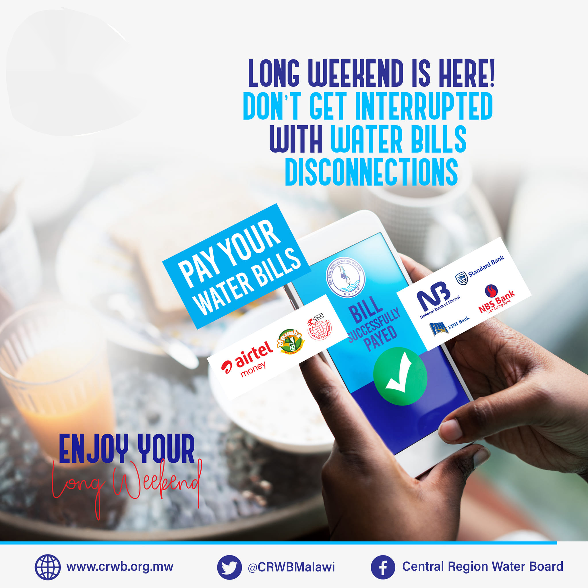 You can also pay your bill through TNM Mpamba and Airtel Money. In the following areas we also receive through Post Offices; Linthipe, Mitundu, Madisi, Kochilira and Kamwendo.